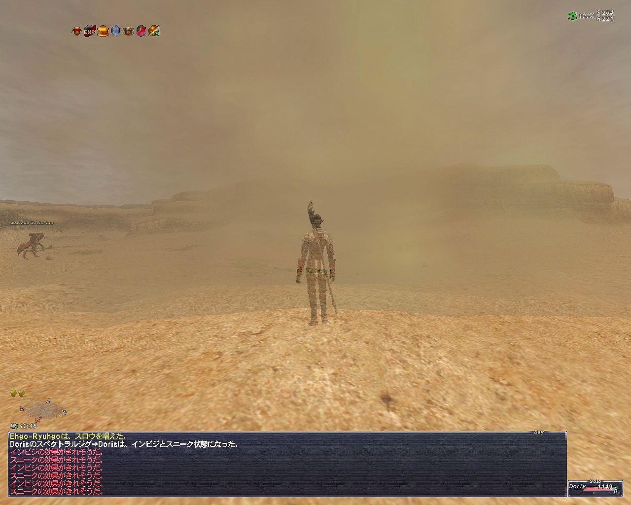砂竜巻の中心でござるwが槍を担ぎたそがれるの図。