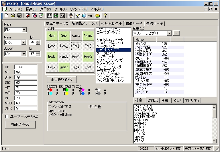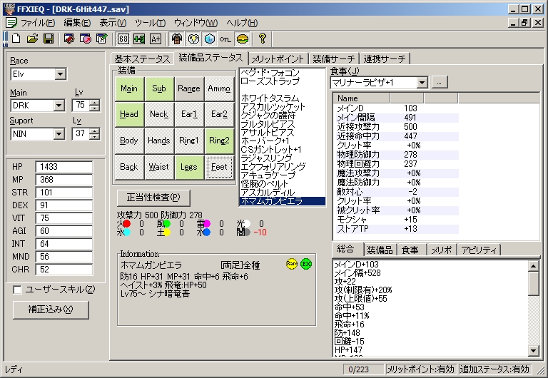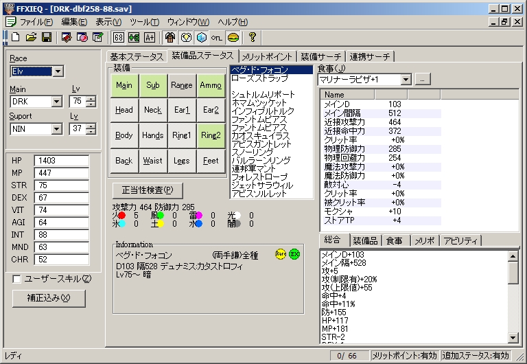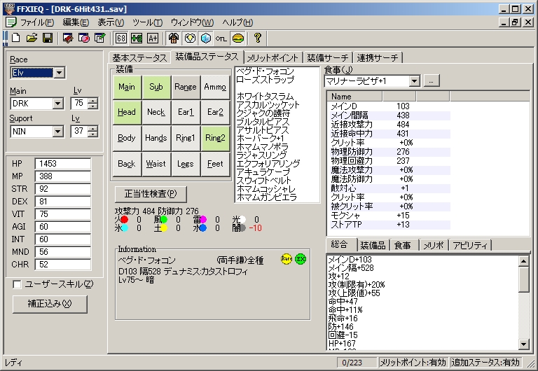 攻撃力:484 命中:431 STR:92 sTP:+13 ヘイスト:17%