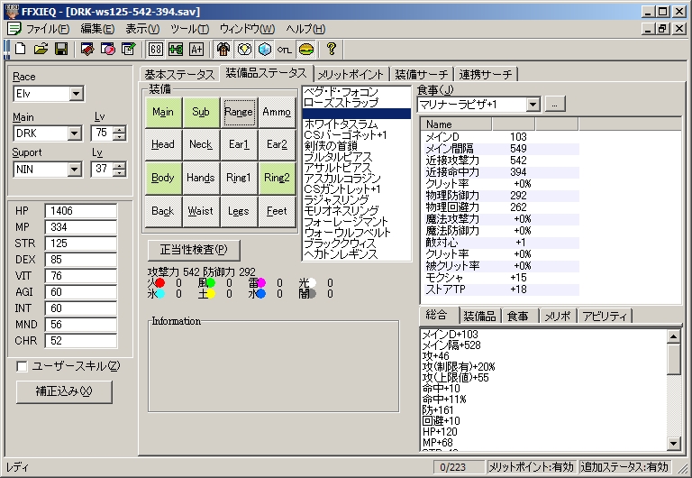 攻撃力:542 命中:394 STR:125 MND:56 INT:60 sTP:+18