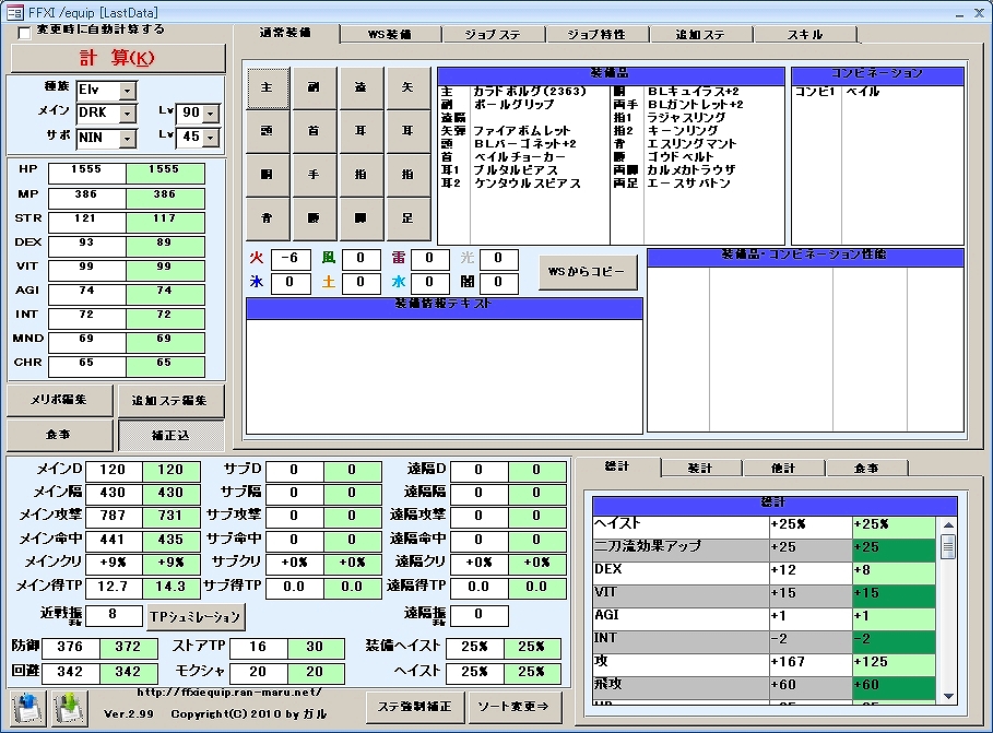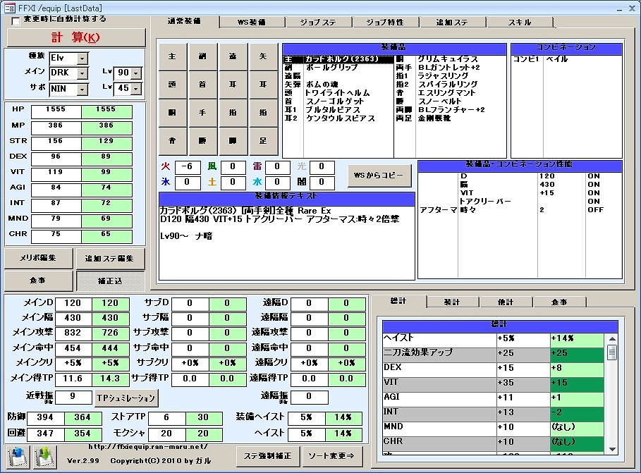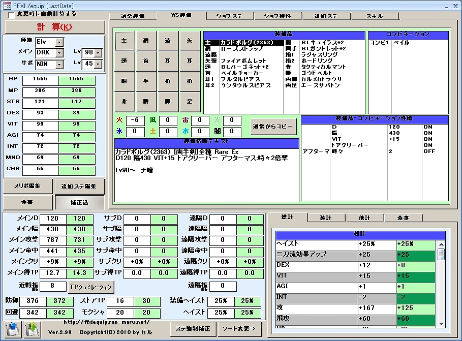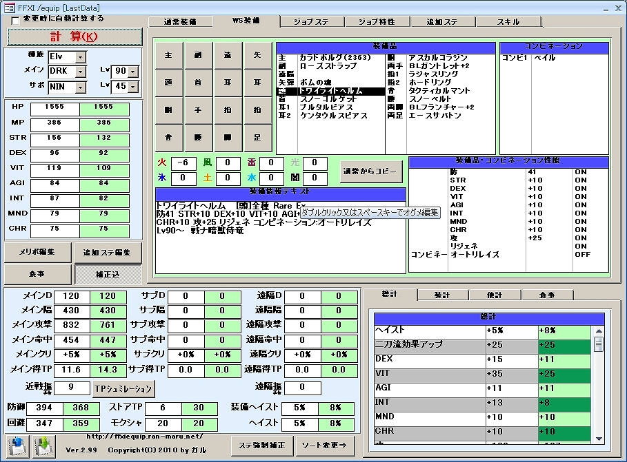 WS+6振り(以降「7振り」)がDAと攻撃力のダウン。